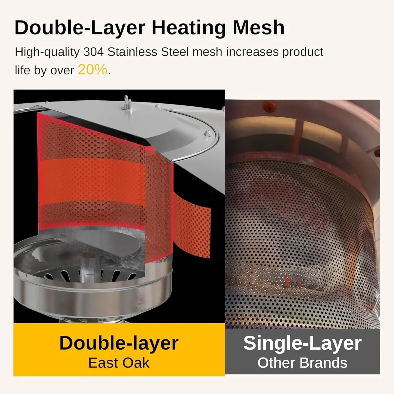 - 48,000 BTU of powerful heat to warm large outdoor areas.