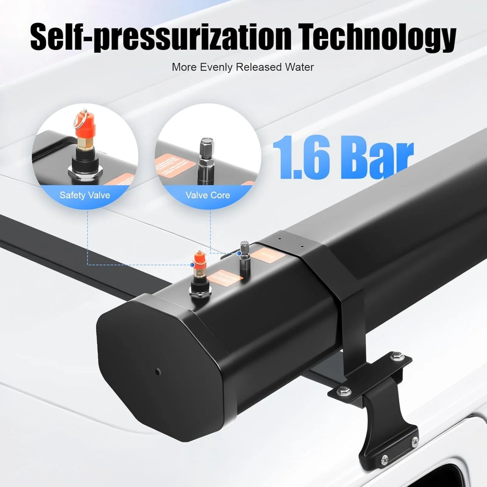 - 【Comfortable Shower】 This pressurized water tank adopts self-pressurization technology, with a pressure of up to 1.6 bar, making the water released by the shower more even and improving your bathing experience.