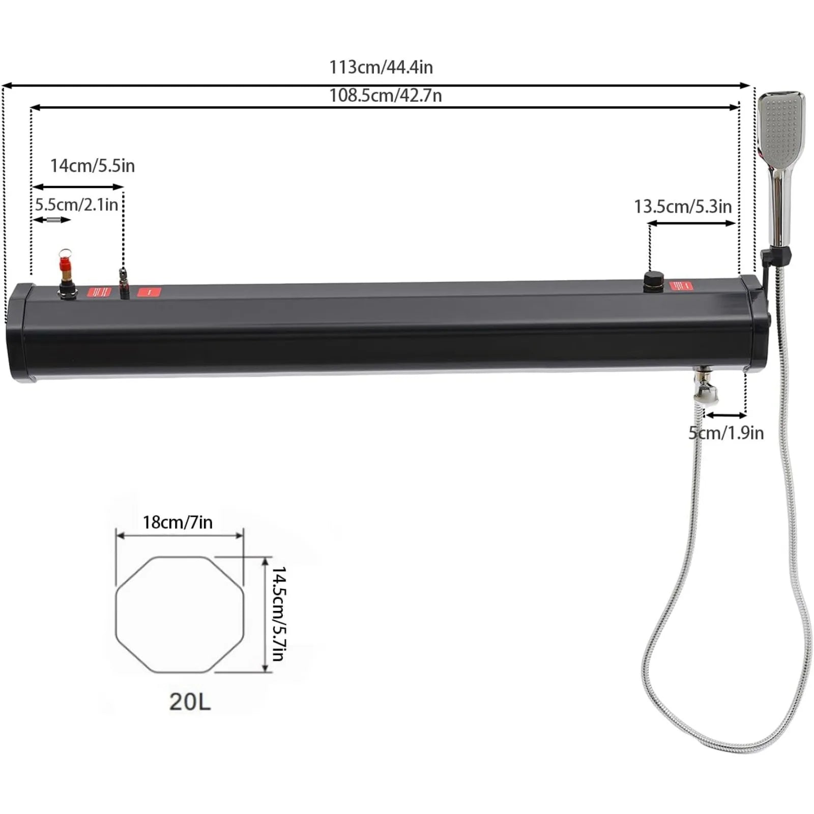 - Water Hose Length: 1.7m/5.58ft