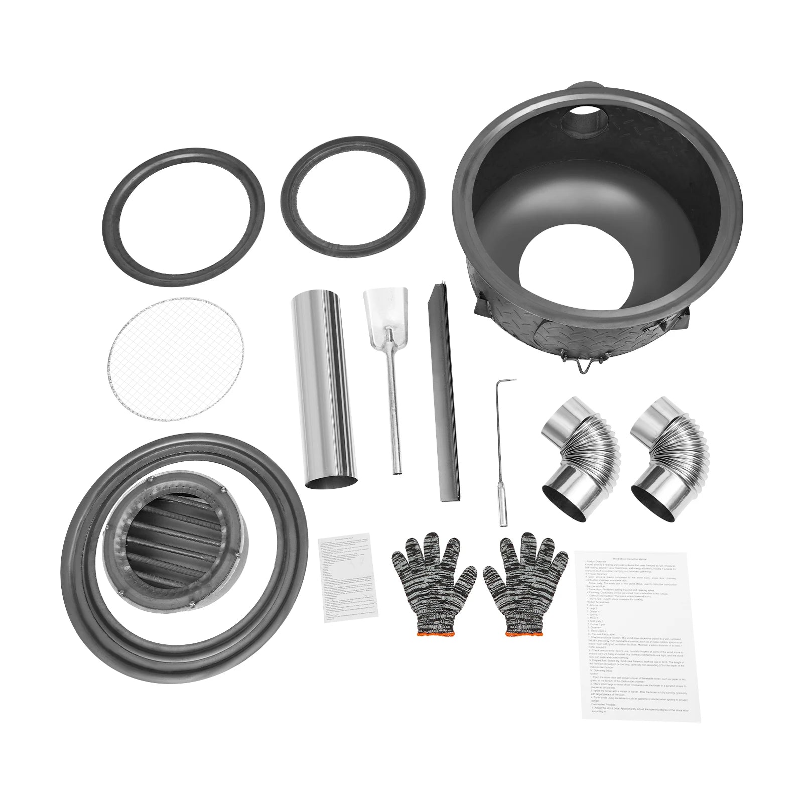 2. The edge of the chimney is sharp. Please wear gloves to install. When the stove is in use, the stove body and door will be at a high temperature; do not touch them directly. It is recommended to wear gloves to open and close the stove door.